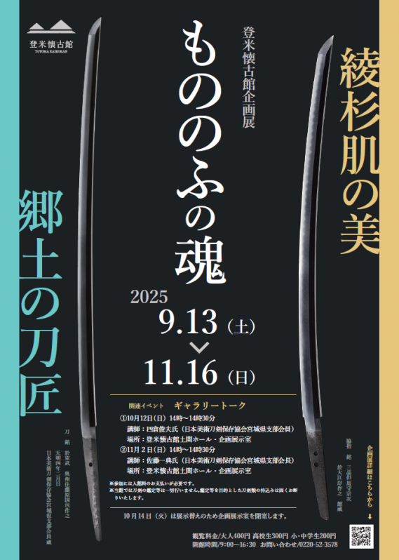 【郷土の刀匠】9月13日(土曜日)~10月13日(月曜日):裏面展示、10月15日(水曜日)~11月16日(日曜日):表面展示