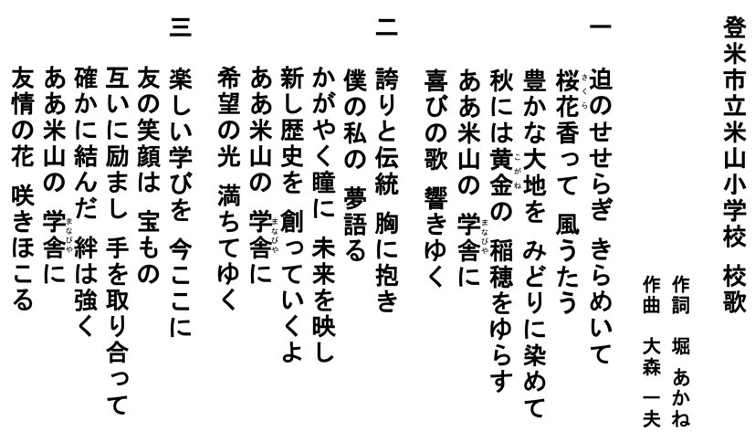 このたび校歌が完成しましたので、以下に歌詞をご紹介します。