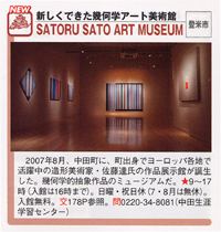 平成19年7月28日(土曜日) 午前10時から:登米市中田生涯学習センター内3階において、「Satoru Sato Art Museum (サトル・サトウ・アート・ミュージアム)」オープンセレモニーを開催。