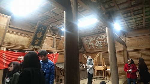 これまで華足寺山門や八幡神社などの地区の文化財調査を行い、学生が地域への提言を行ったり、地域住民と意見交換会や交流会を行うほか、米川小学校並びに米川地区出身の中学生との交流、米川の水かぶりの手伝い、見学を行うなど、地域住民との交流を深め、学生からの意見は古民具展示などの地域づくり事業に活かされています。